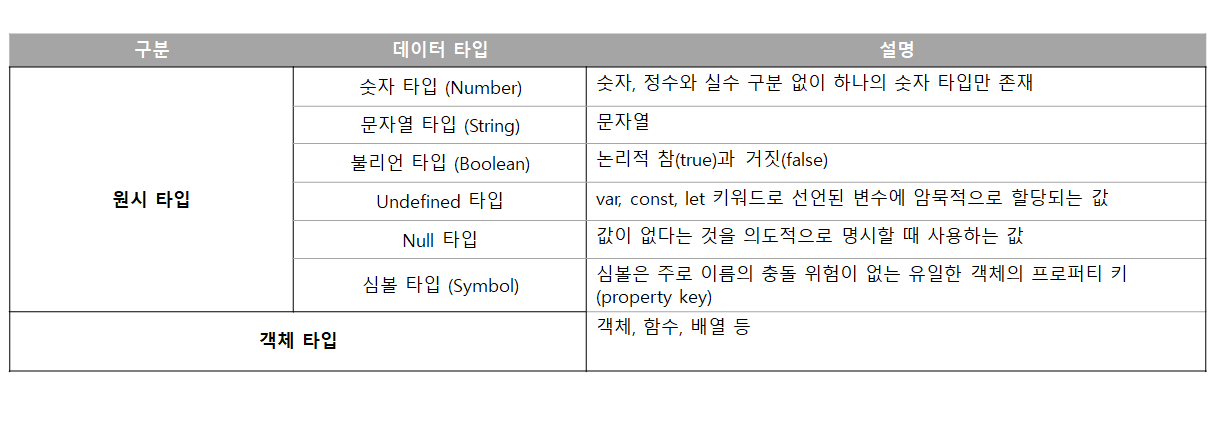 데이터 타입 표, 출처: 모던 자바스크립트